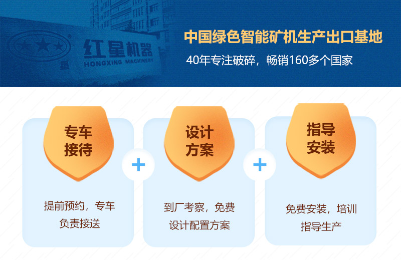 隨著天然砂的枯竭,鵝卵石因取材方便、資源豐富,常被用于制砂原料進行制砂生產,鵝卵石制砂機因環保、節能而被更多企業所認可,紅星生產的制砂機類型多、型號全,想對公司設備有更多了解的用戶,可到廠進行參觀、考察,公司可為用戶提供以下服務: